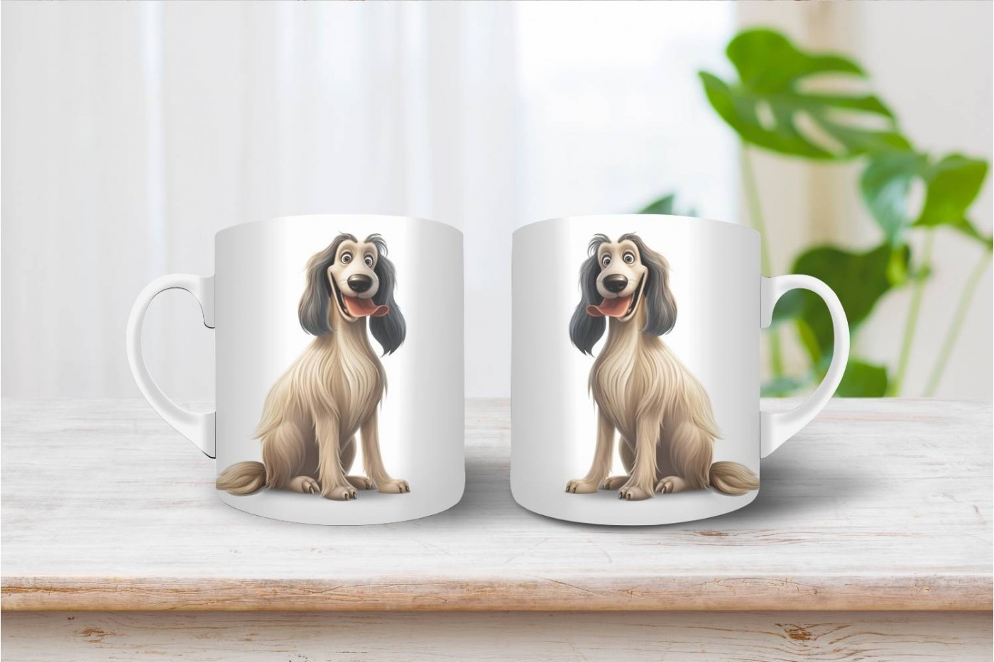 Fedezd fel az új kedvenc reggeli társadat: a különleges rajzfilm stílusú afgán agár mintás bögrét, a..