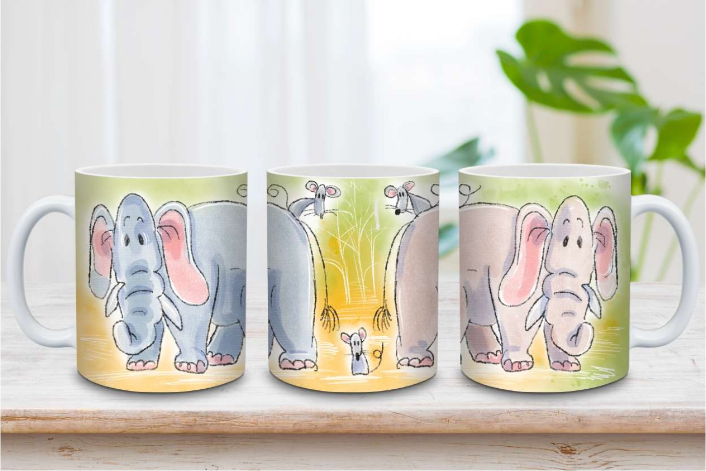 Címkék: elefántos bögre, illusztrált panoráma bögre, állatos bögre, egyedi bögre, rajzolt bögre, egér és elefánt bögre