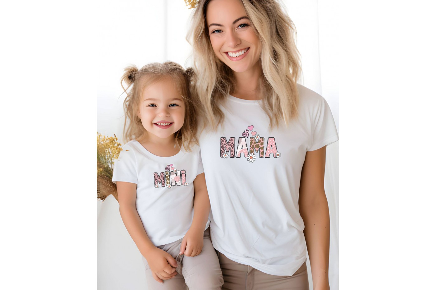 Élvezd az anya-lánya összeöltözés minden pillanatát ezzel a stílusos "Mama és Mini" póló szettel. A fehér pólókon rózsaszín feliratok pompáznak, melyet bohém stílusú, lenyűgöző mintázat díszít, tökéletesen kiegészítve a menő feliratokat. A design nem csak divatos, de rendkívül kényelmes is, így garantáltan a kedvenceitek közé fog tartozni mindennapi viselésre vagy különleges alkalmakra. Légy trendi és kényelmes, miközben megmutatod a világnak ezt a különleges kapcsolatot, amit anya és lánya között van.