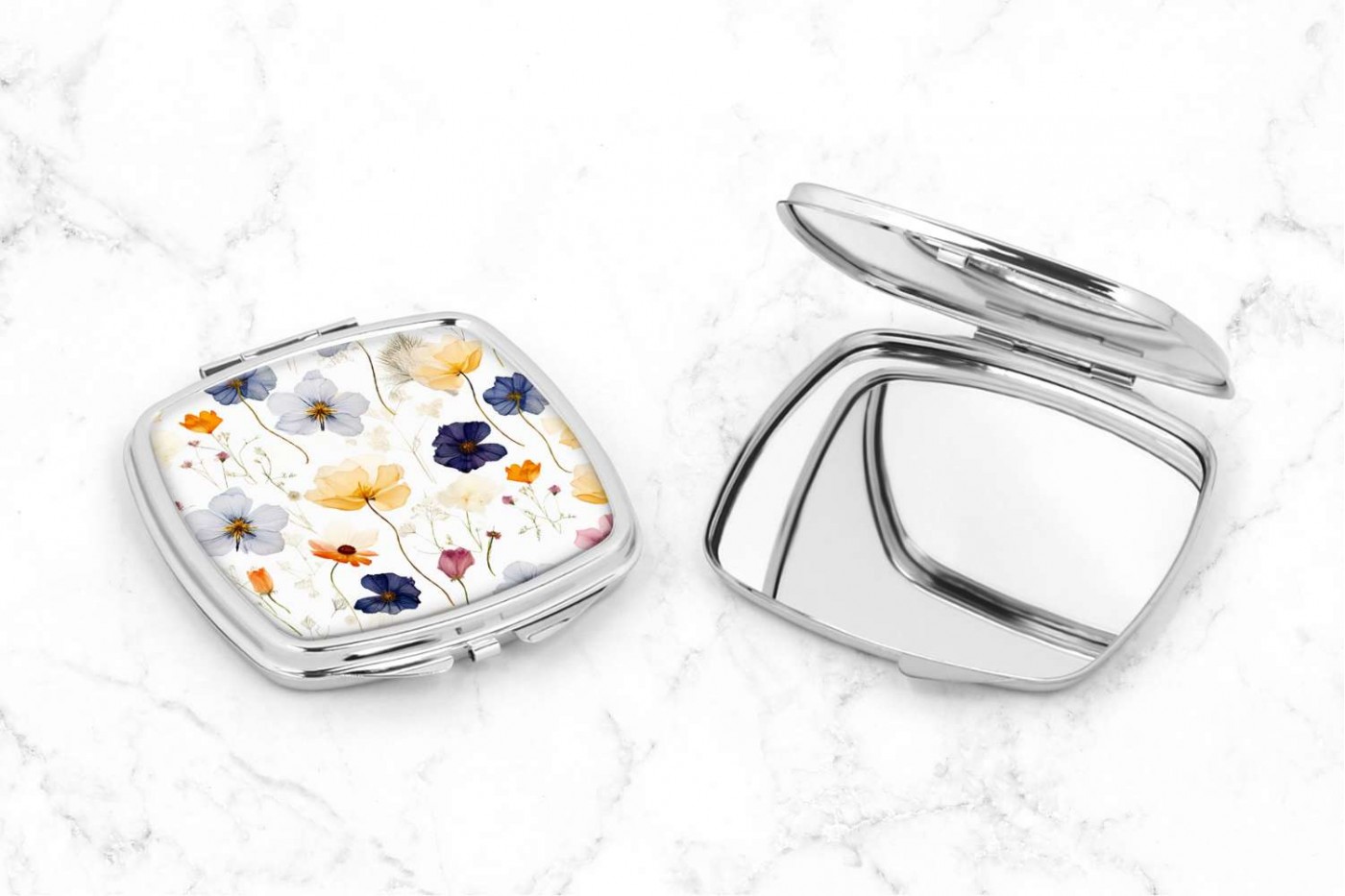 Címkék: sminktükör, sminkes tükör, kozmetikai tükör, préselt virágos grafika, rozsdamentes acél, szublimációs nyomtatás, táskában elfér, ajándék nőknek