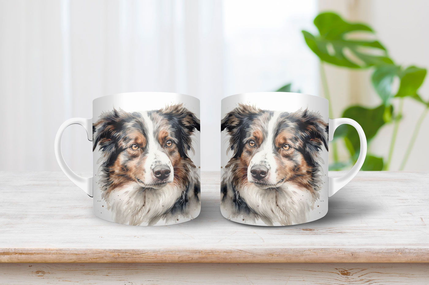 A minta hűen ábrázolja az ausztrál juhászkutya jellegzetes vonásait, mint például az élénk színek, a karakteres arc és a különleges szőrzet. Ezáltal a bögre valósághű és elragadó megjelenést kölcsönöz a juhászkutya rajongóknak.