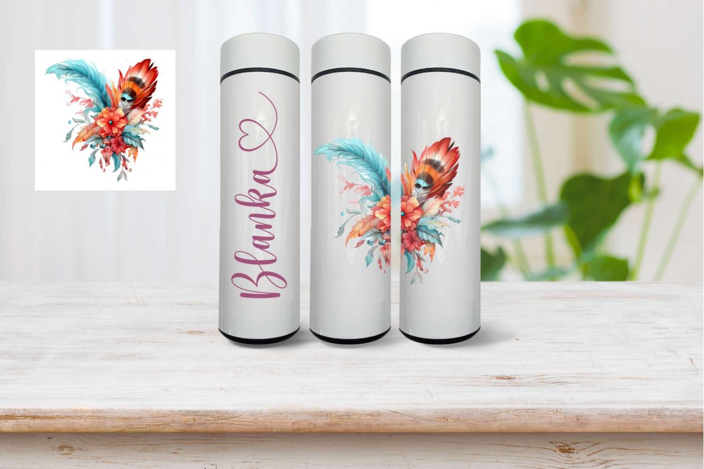 Az egyedülálló boho toll minta stílusos megjelenést kölcsönöz a termosznak. Az élénk és részletgazdag grafika harmonikusan illeszkedik a boho stílus jegyeihez, és örömöt és inspirációt nyújt a mindennapokban.