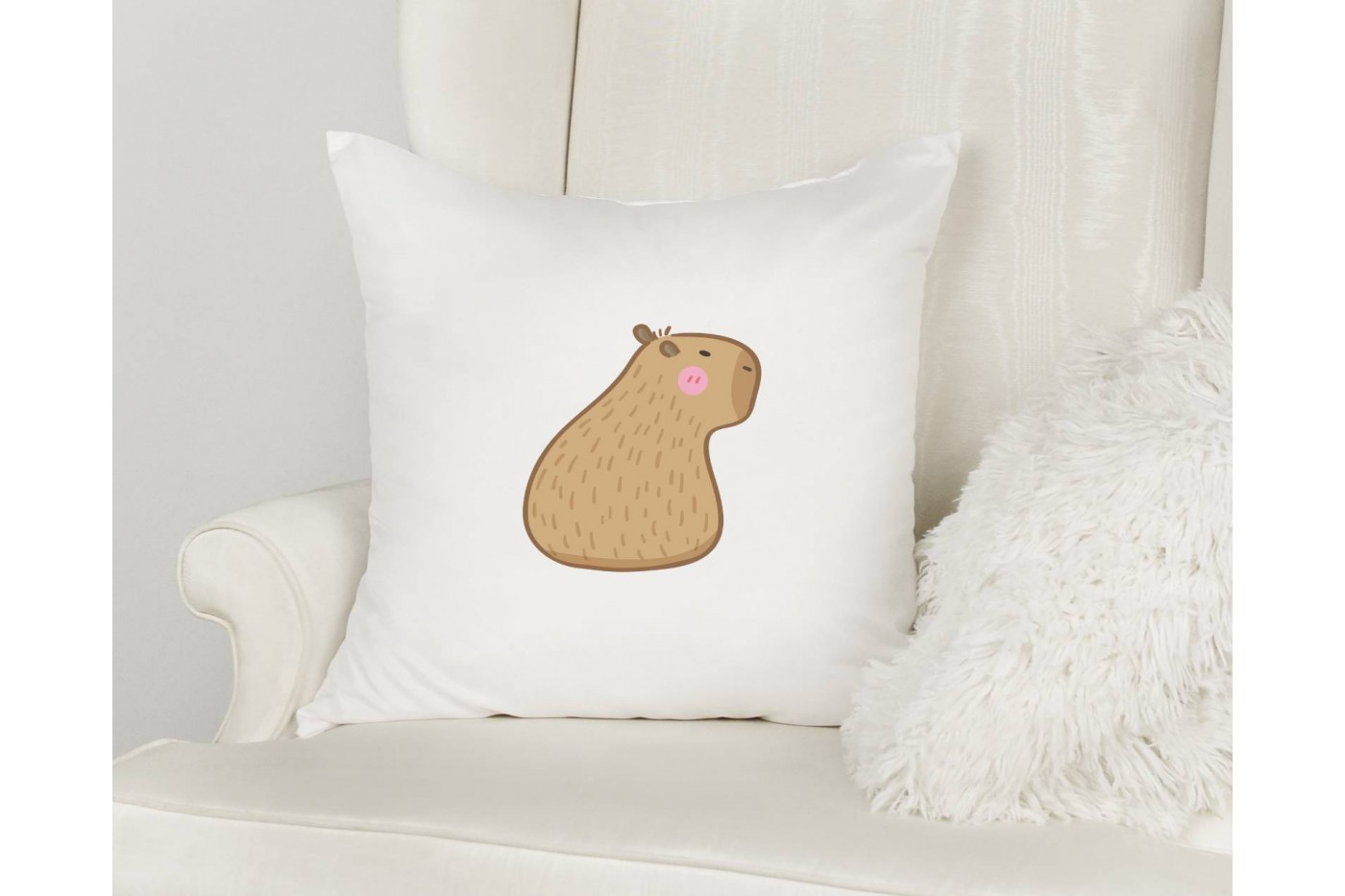 Capybara design: A rajzolt capybara a párnát egyedi és bájos megjelenéssel ruházza fel. Egy igazi műalkotás, amit imádni fogsz.