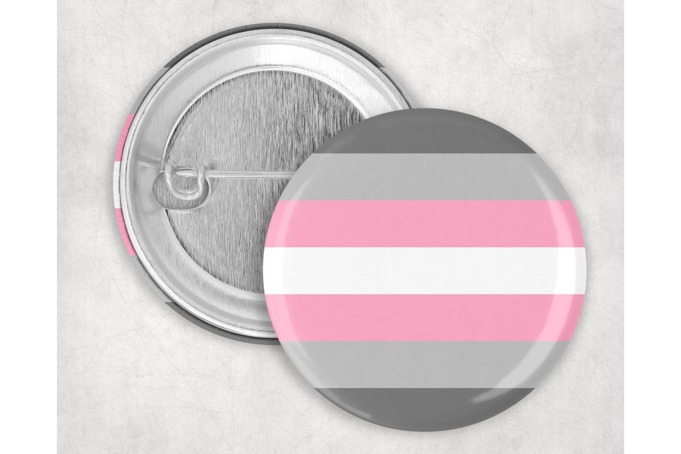 A demigirl pride kitűző a demilány vagy féllány identitással rendelkező emberek szimbóluma. A demigirl olyan személy, aki részben nőként, részben pedig egyébként (például semlegesnek) éli meg a nemi identitását – ez az önazonosság a nőiséghez köt, de nem teljes mértékben. A szürke, fehér és rózsaszín csíkokból álló demigirl kitűző kifinomult, mégis karakteres kiegészítője lehet a kabátodnak, hátizsákodnak vagy bármilyen ruhadarabnak, hogy bátran vállald önmagad vagy támogasd a közösséget.