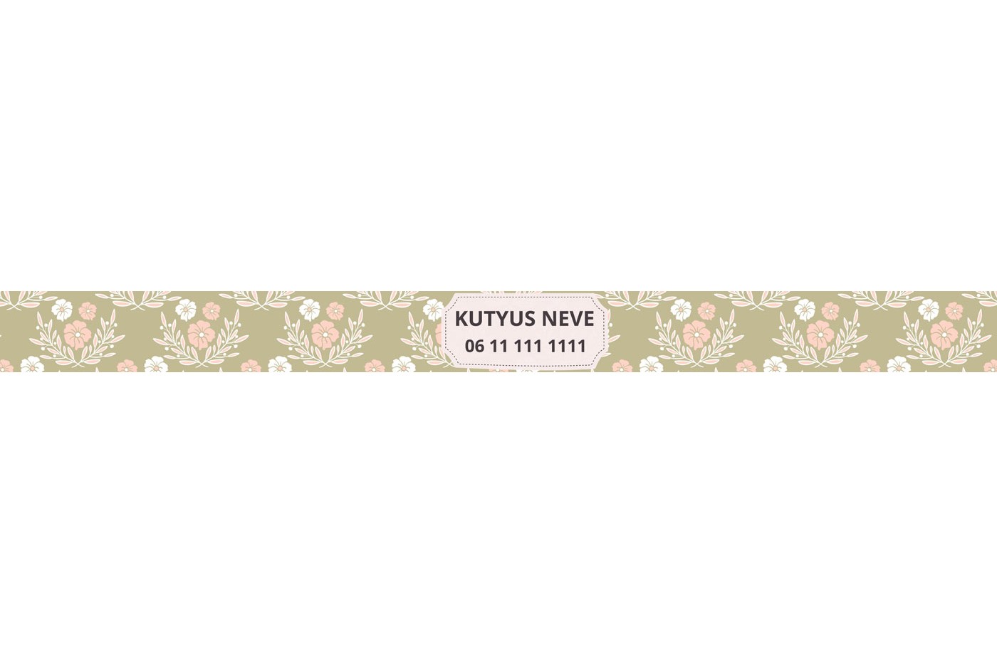 Címkék: modern virágos minta, neves nyakörv, nyakörv névvel, nyakörv telefonszámmal