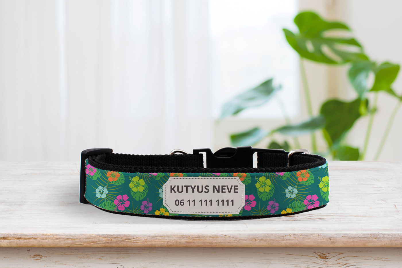 Címkék: trópusi minta, neves nyakörv, nyakörv névvel, nyakörv telefonszámmal