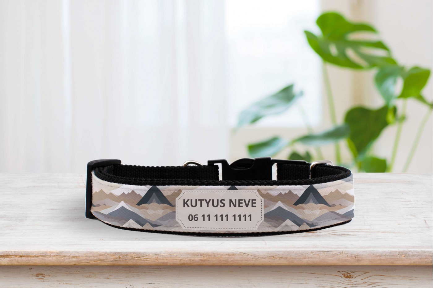 Címkék: nyakörv, egyedi nyakörv, stílusos nyakörv, biztonság, kutya, hegyek minta, neves nyakörv, nyakörv telefonszámmal, nyakörv névvel