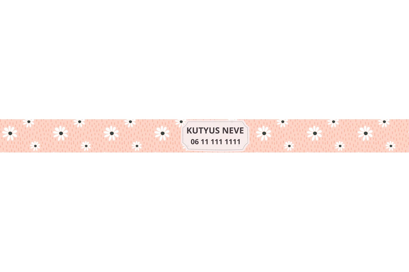 Címkék: modern virágos minta, neves nyakörv, nyakörv névvel, nyakörv telefonszámmal