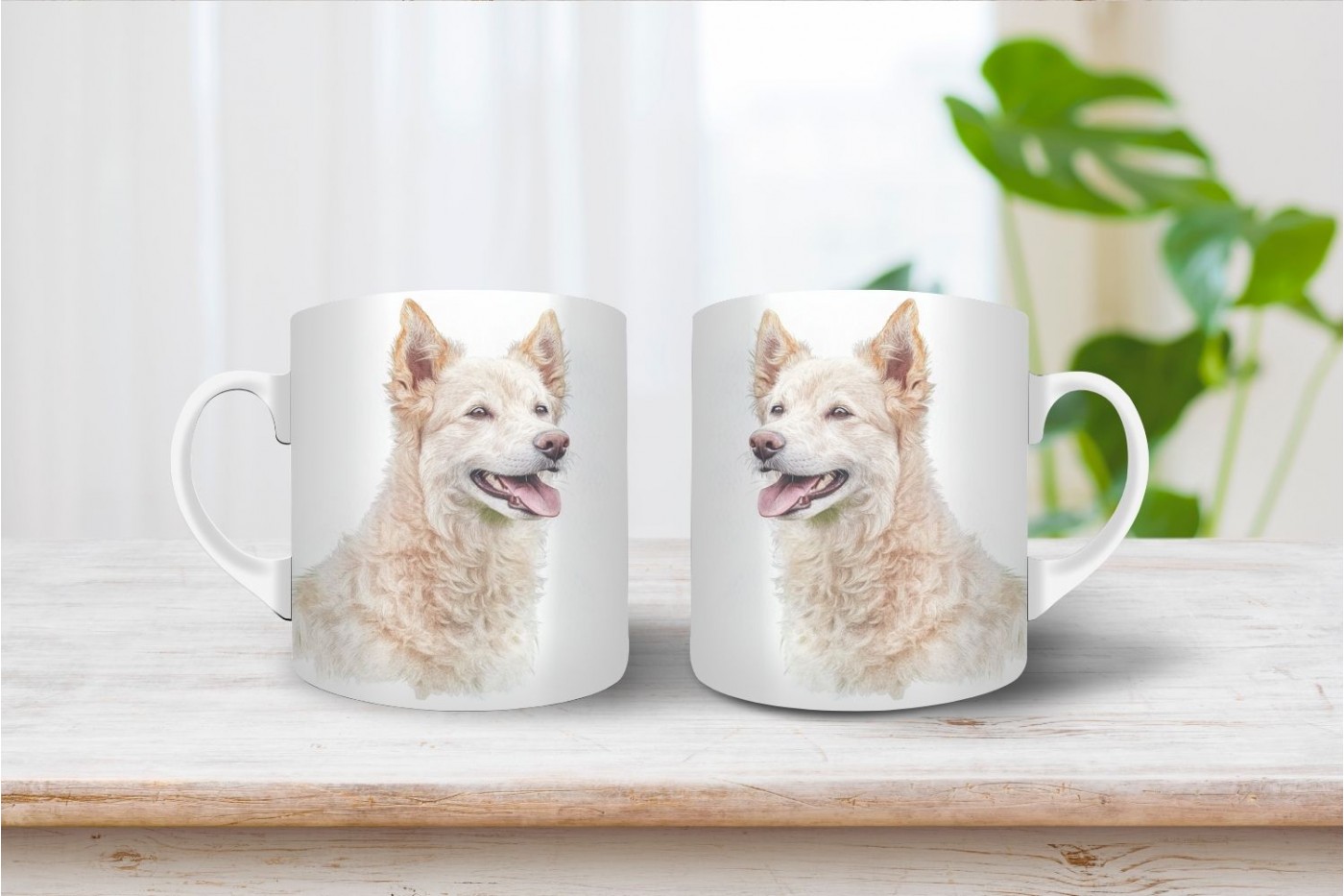 A fehér mudi bögre tökéletes választás mindennapi használatra vagy különleges ajándékként.