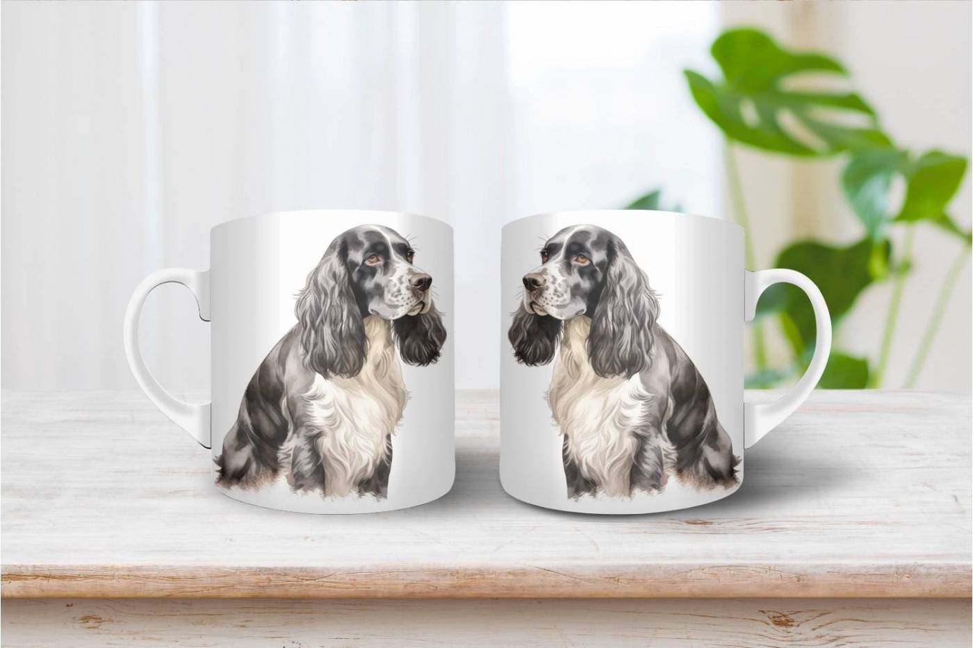 Fedezd fel a fekete-fehér cocker spániel mintás bögrénket, amely tökéletes választás minden kutyabar..