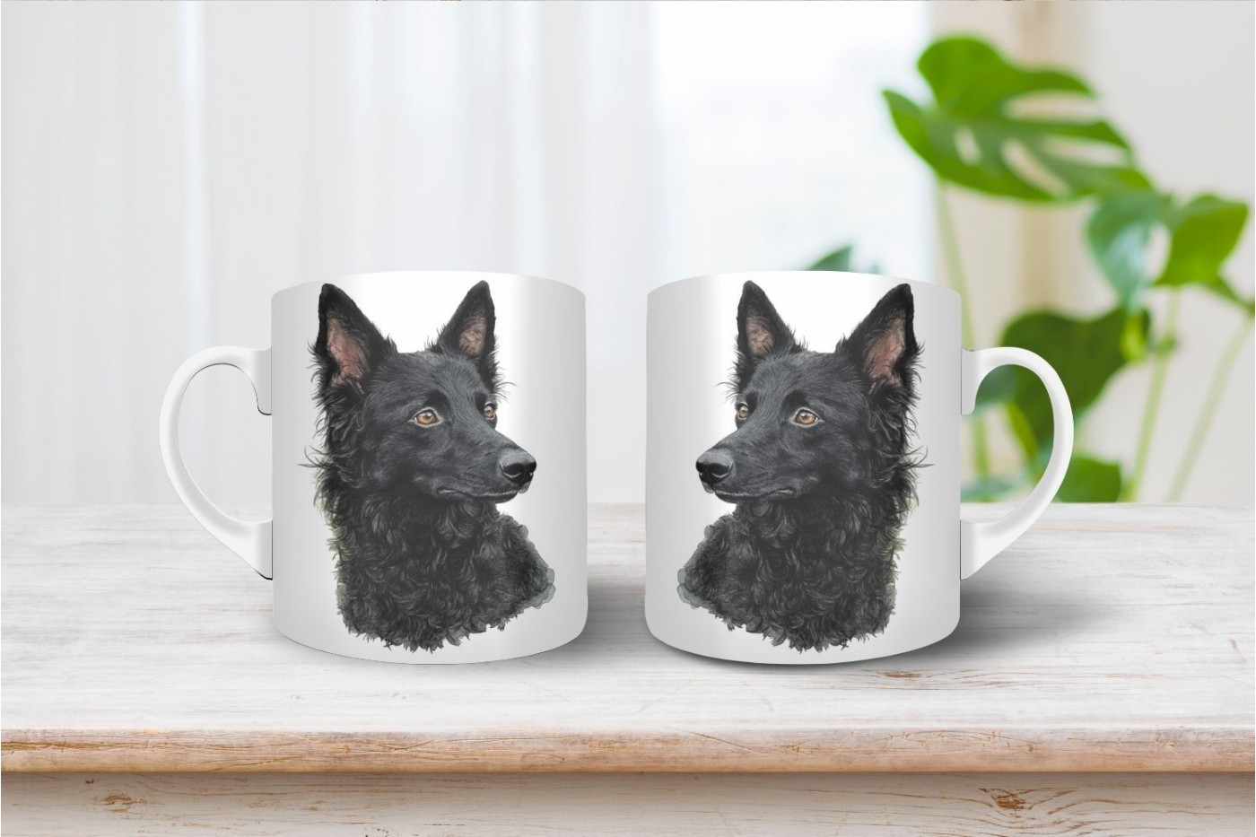 Ez a 330 ml-es prémium kerámia bögre részletes grafikával készült, amely a fekete mudi karakterét és szépségét ragadja meg.
