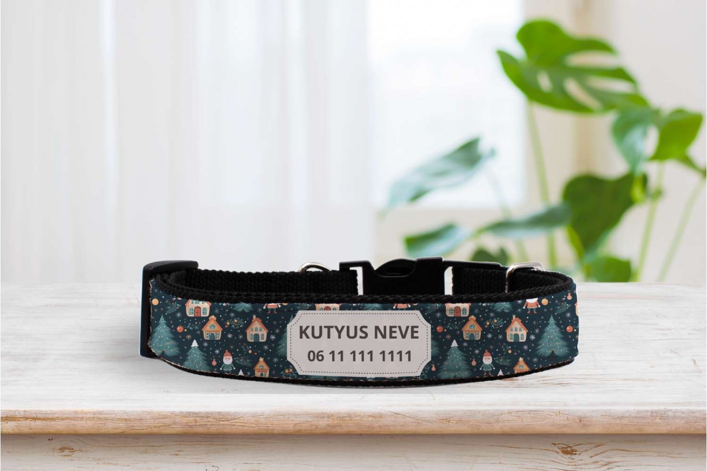 Mikulás mintás nyakörv - állítható - névvel, telefonszámmal