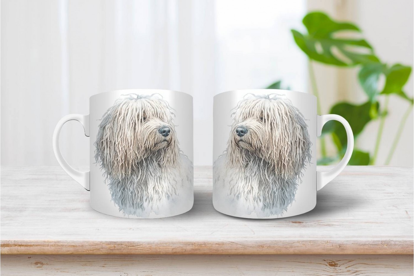 Ez a 330 ml-es prémium kerámia bögre részletgazdag grafikával készült, amely a komondor egyedi megjelenését és karakterét idézi meg.