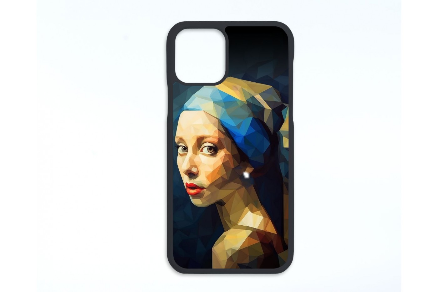 Művészi kifejezés: A Leány gyöngy fülbevalóval festmény adaptációja poligon stílusban. Ebben a tokban ez a műalkotás mindenki számára hordozható darabbá válik, így mindig magaddal viheted a művészi stílust.