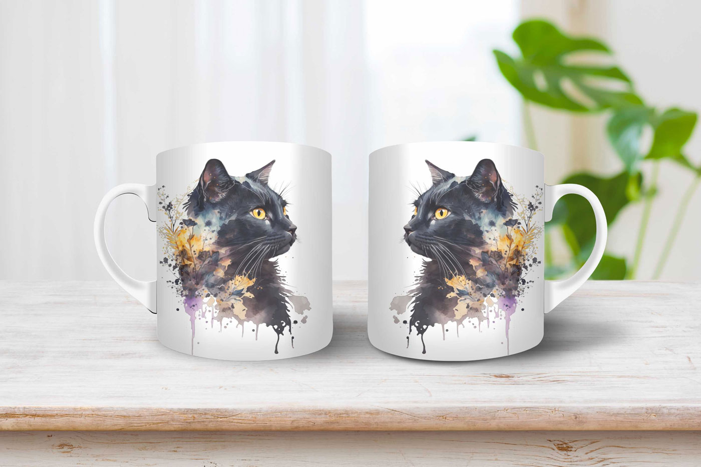 Bemutatjuk a fekete macskás bögrénket - egy vonzó, fehér kerámia bögrét egyedi fekete macskamintával, amely mosogatógépben mosható és mikrohullámú sütőbe is betehető.
