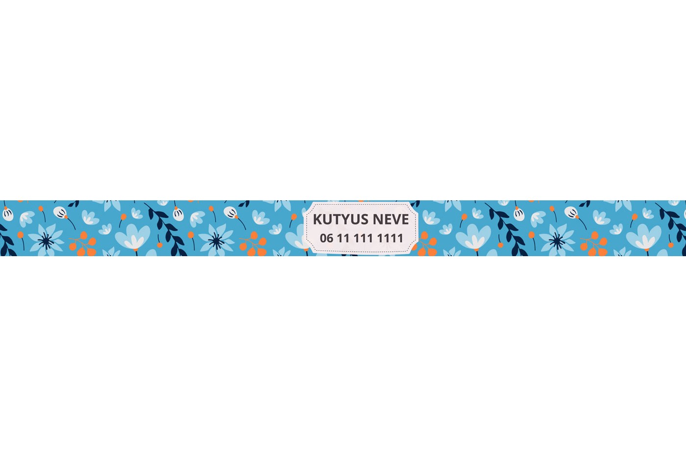 Címkék: modern virágos minta, neves nyakörv, nyakörv névvel, nyakörv telefonszámmal