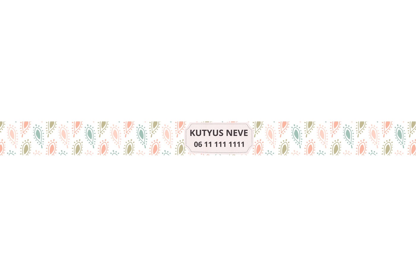 Címkék: modern virágos minta, neves nyakörv, nyakörv névvel, nyakörv telefonszámmal