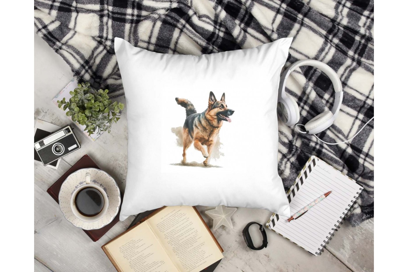 A németjuhász minta részletes és élethű, amely lehetővé teszi, hogy a németjuhászok minden szerelmese elragadtatással nézze a párnát. A fajta jellegzetes maszkja, fülei és izmos testalkata azonnal felismerhetővé teszi a németjuhász kutyát, és emlékeztet a fajta hűséges és intelligens jellemére.