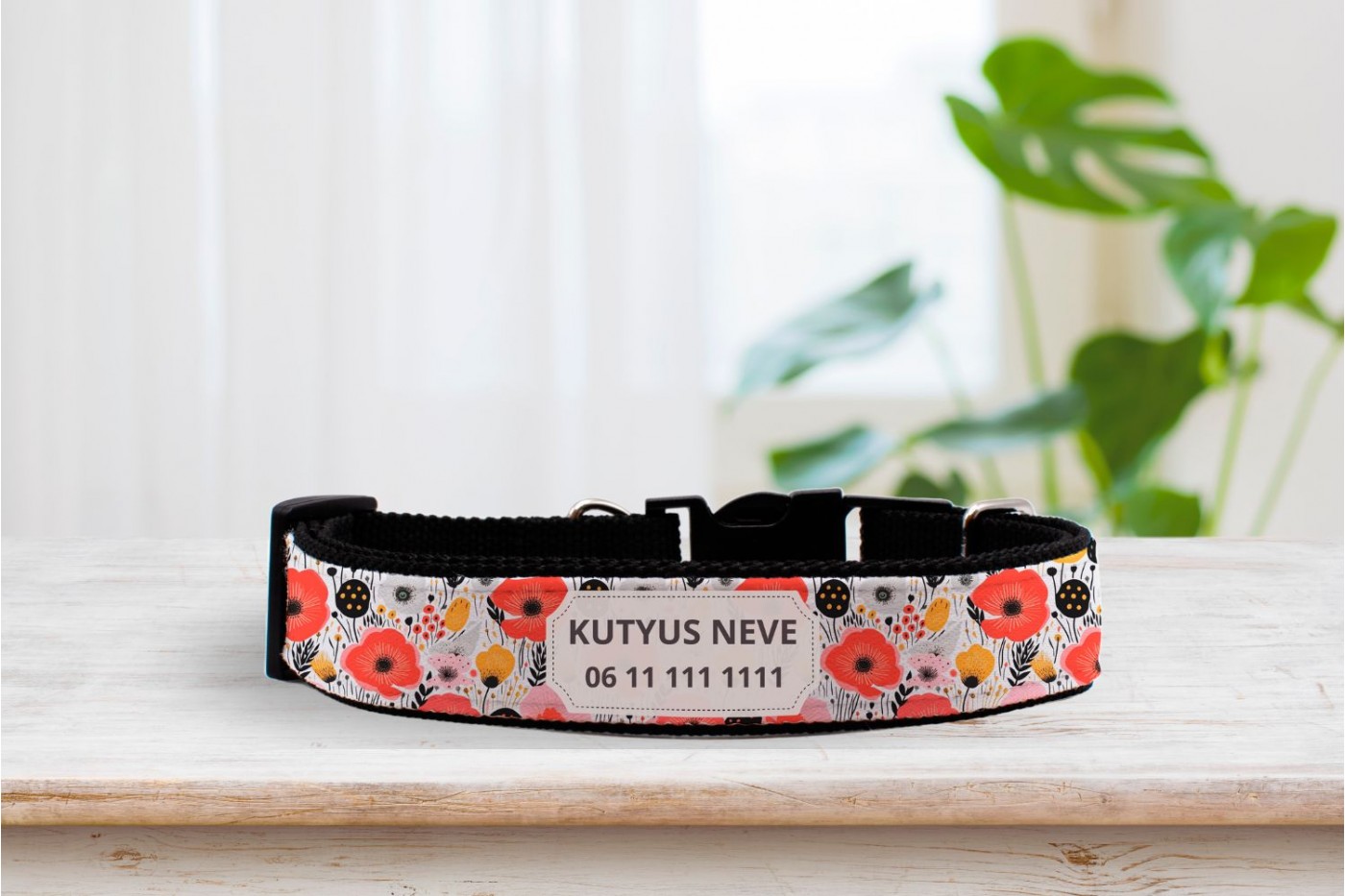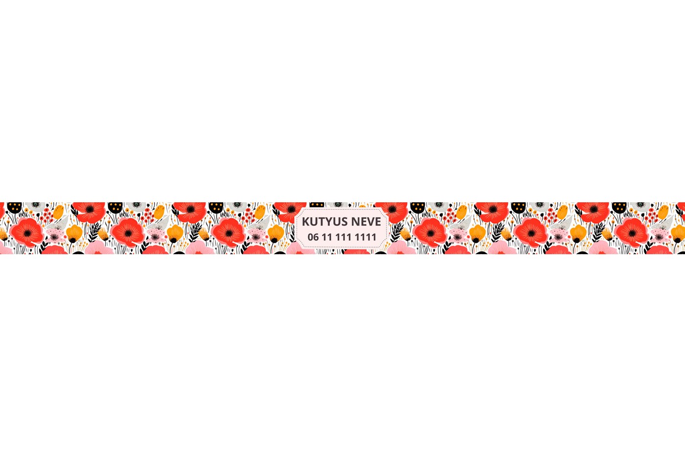 Ismerd meg új, egyedi pipacs mintás nyakörvünket, amely az egyszerűség és a szépség tökéletes összhangját hozza el kutyusod számára. Ez a nyakörv nem csak bájos és divatos, hanem praktikus is, hiszen kedvenced nevét és a te telefonszámodat is magában hordozza.t