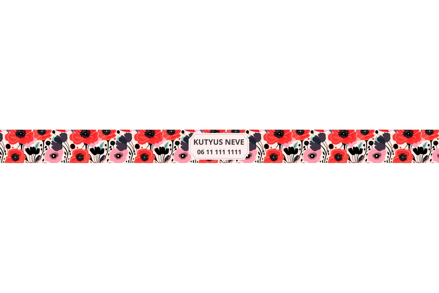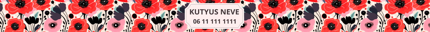 Ismerd meg új, egyedi pipacs mintás nyakörvünket, amely az egyszerűség és a szépség tökéletes összhangját hozza el kutyusod számára. Ez a nyakörv nem csak bájos és divatos, hanem praktikus is, hiszen kedvenced nevét és a te telefonszámodat is magában hordozza.t