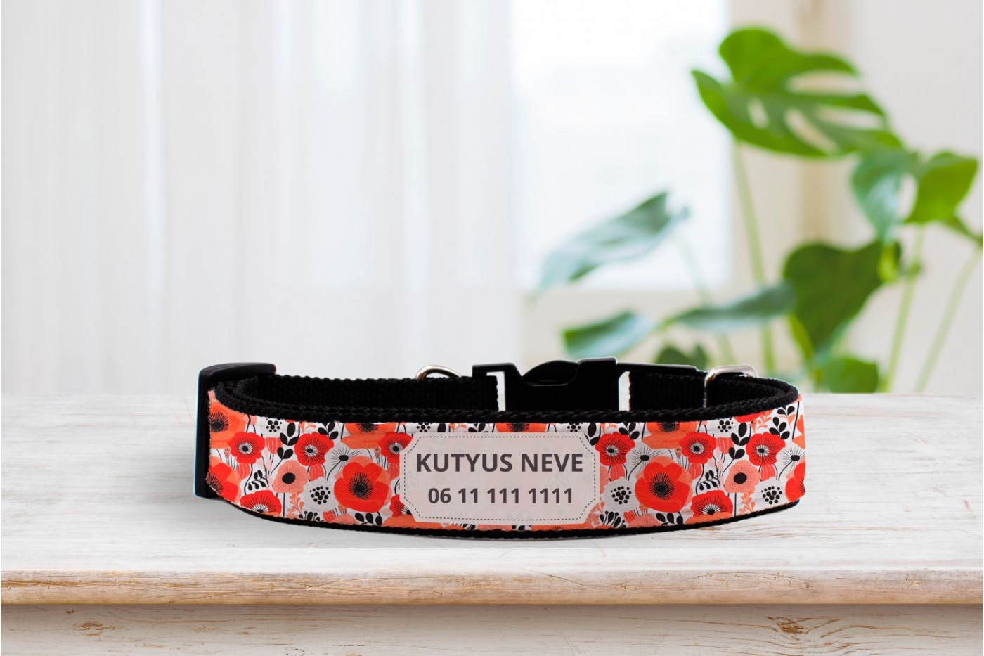 Ismerd meg új, egyedi pipacs mintás nyakörvünket, amely az egyszerűség és a szépség tökéletes összhangját hozza el kutyusod számára. Ez a nyakörv nem csak bájos és divatos, hanem praktikus is, hiszen kedvenced nevét és a te telefonszámodat is magában hordozza.t