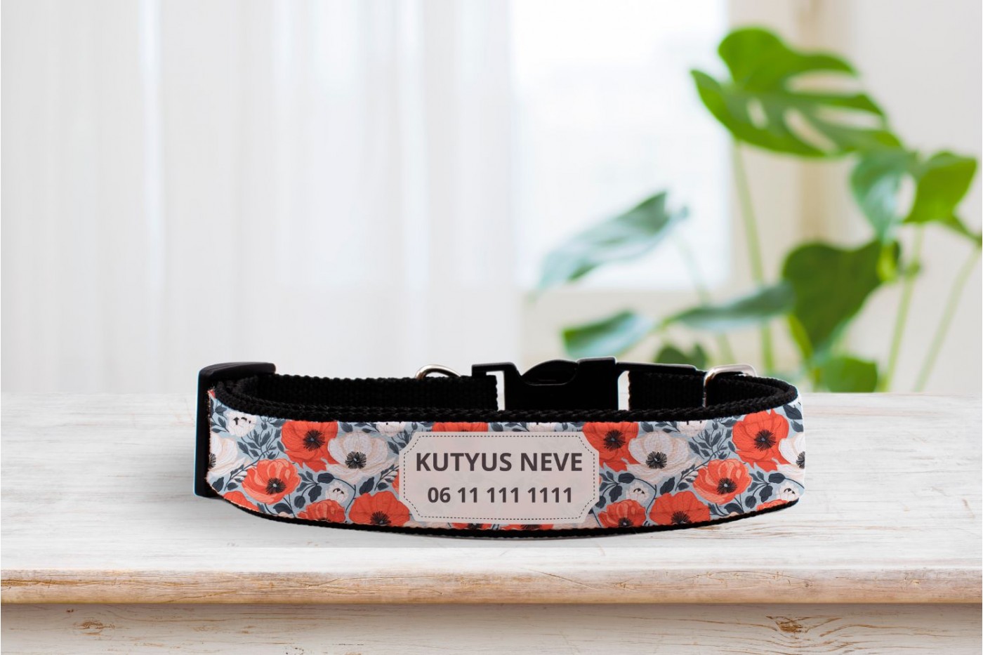 Egyedi pipacsos nyakörv - állítható - névvel, telefonszámmal
