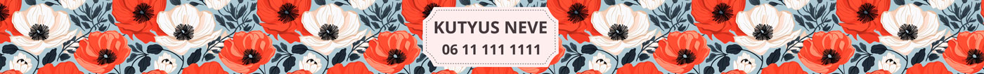 Ismerd meg új, egyedi pipacs mintás nyakörvünket, amely az egyszerűség és a szépség tökéletes összhangját hozza el kutyusod számára. Ez a nyakörv nem csak bájos és divatos, hanem praktikus is, hiszen kedvenced nevét és a te telefonszámodat is magában hordozza.t
