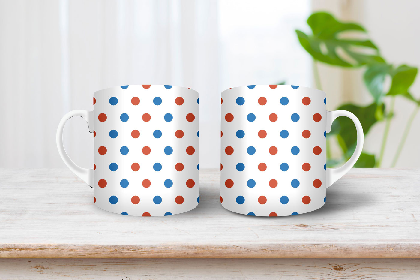 A kerámiából készült bögre fehér alappal rendelkezik, melyet vidám, kontrasztos pöttyös minta díszít. A kék, piros és fehér pöttyök garantálják a játékos és vidám megjelenést.