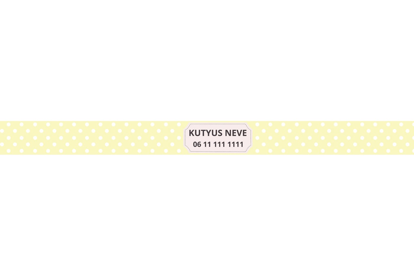 Címkék: pöttyös nyakörv, neves nyakörv, nyakörv névvel, nyakörv telefonszámmal, pasztell-sárga