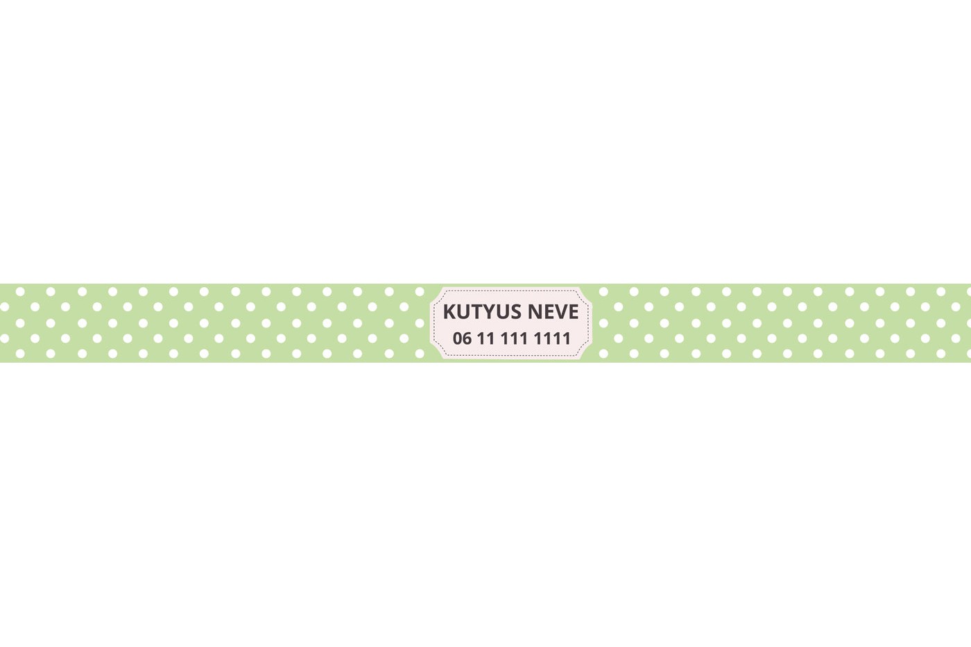 Címkék: pöttyös nyakörv, neves nyakörv, nyakörv névvel, nyakörv telefonszámmal, pasztellzöld
