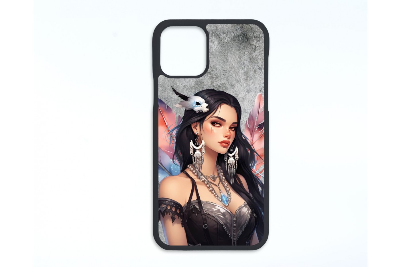 Pocahontas rockstar stílusú ábrázolása egy szublimált fém betétre került nyomtatás útján. Ez a szublimációs technika lehetővé teszi, hogy a minta éles és gazdag színekben ragyogjon, miközben a fém betét tartósságot és eleganciát kölcsönöz a toknak.