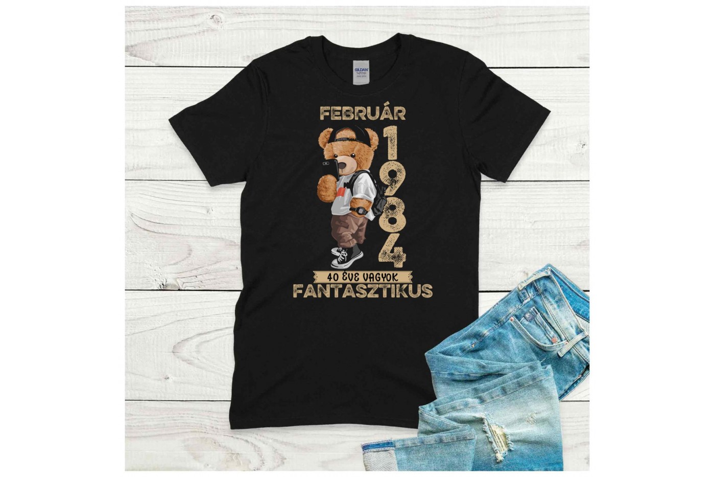Ünnepeld a születésnapost különleges stílusban ezzel a vagány macis szülinapi pólóval férfiaknak, amely minden részletében személyre szabható. A pólón egy stílusos maci grafika található, ami humoros szöveggel egészül ki, például: „1984 február: 40 éve vagyok fantasztikus”. Ez a design ideális választás azok számára, akik egyedi és menő megjelenést keresnek, hogy kiemelkedjenek a tömegből születésnapjukon.