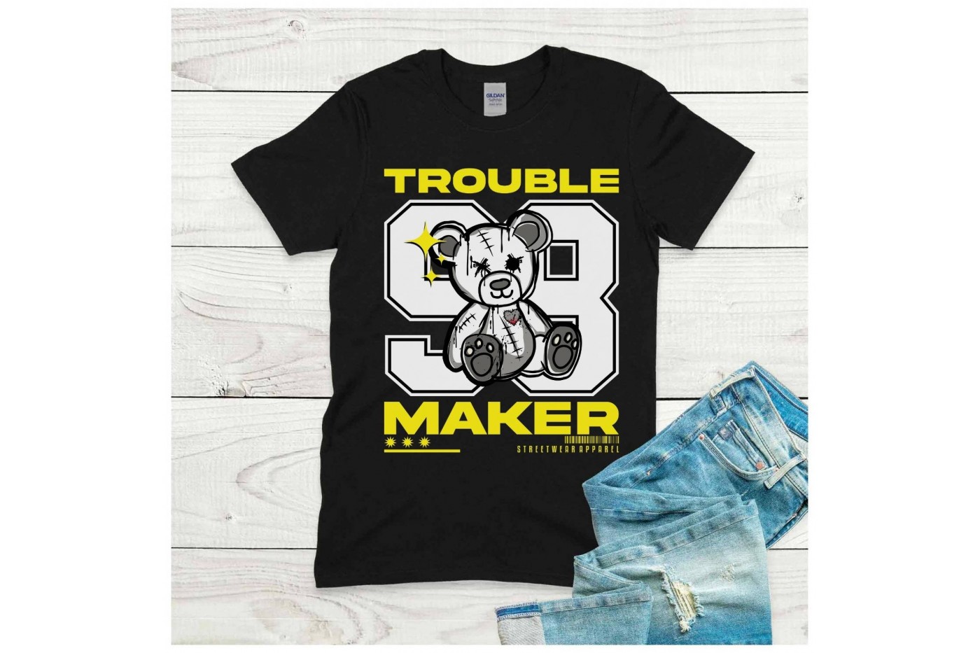 Merülj el az urban streetwear világában a "TROUBLE MAKER" feliratú teddy macis pólóval, ami nem csak..
